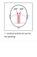 ‼️Note: The ear-to-ear parting can be slightly further backon the head if the hair is fine, but no more forward. This is dependent on hair density and head shape.