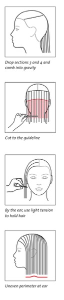 protrude and let the hair fall loosely. Not taking extra care in this area can cause an uneven perimeter below the ear.