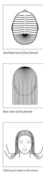 ‼️Note: It is important to evenly distribute the hair and comb it into gravity, without allowing it to shift forward. Shifting the hair forward will cause a convex side perimeter.