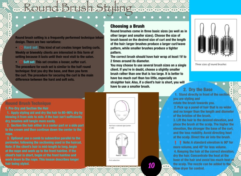 Round brush setting is a frequently performed technique inhair design. There are two variations:
