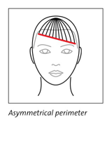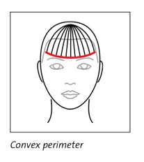 the front hairline. If the front perimeter is above the bridge of the nose, it is sometimes called “bangs” or “fringe.”