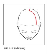 If the client always wears a side part, angle the side part from the front hairline to the center crown. This side part connects with the back middle part. However, if the client wants to be able to change the part or wear a center part, part the hair in the center for cutting.