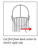 to the center and cut from the center to the client’s left side.