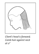 2. For control, position the client’s head forward to create a solid plane (the neck) on which to cut.
