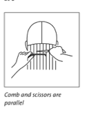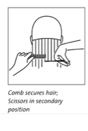 6. Holding the scissors in secondary position (thumb and fingers down) and parallel to the section parting, cut the hair.
