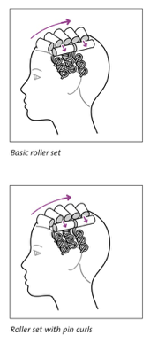 Roller curls can be set in combination with pin curls, using