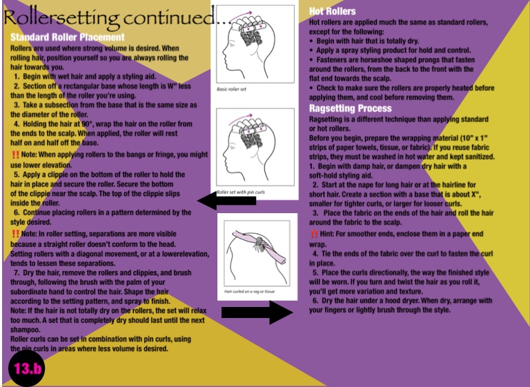 Note: If the hair is not totally dry on the rollers, the set will relax too much. A set that is completely dry should last until the next shampoo.