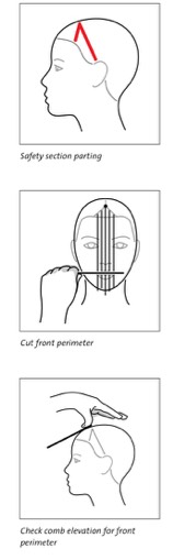 Note: If you are cutting a short front perimeter (shorter than the bridge of the nose), the perimeter will have