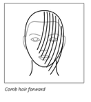 2. Comb the rest of the hair in the side perimeter (the hair in front of the diagonal parting) forward T to the section.