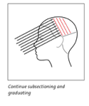 11. Continue subsectioning and graduating the side until no more hair reaches the guide. Usually, basic sections 1 and 2 will not reach the guide.