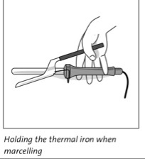 3. Hold forearm, comb, and iron parallel to the floor and to one another to ensure horizontal waves.