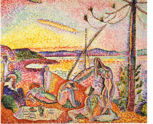 -Matisse prese le mosse da un soggetto caro agli impressionisti, la colazione all'aperto, ma subito se ne distaccò per mezzo della tecnica pittorica.