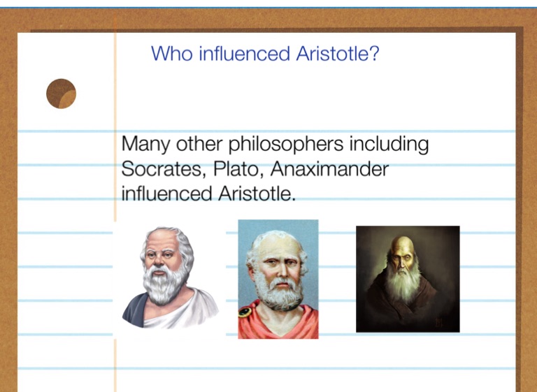 Many other philosophers including Socrates, Plato, Anaximander influenced Aristotle.