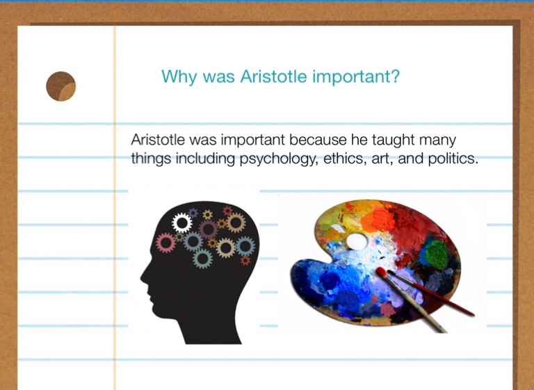 Aristotle was important because he taught many things including psychology, ethics, art, and politics.