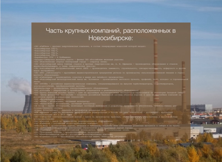 Часть крупных компаний, расположенных в Новосибирске: