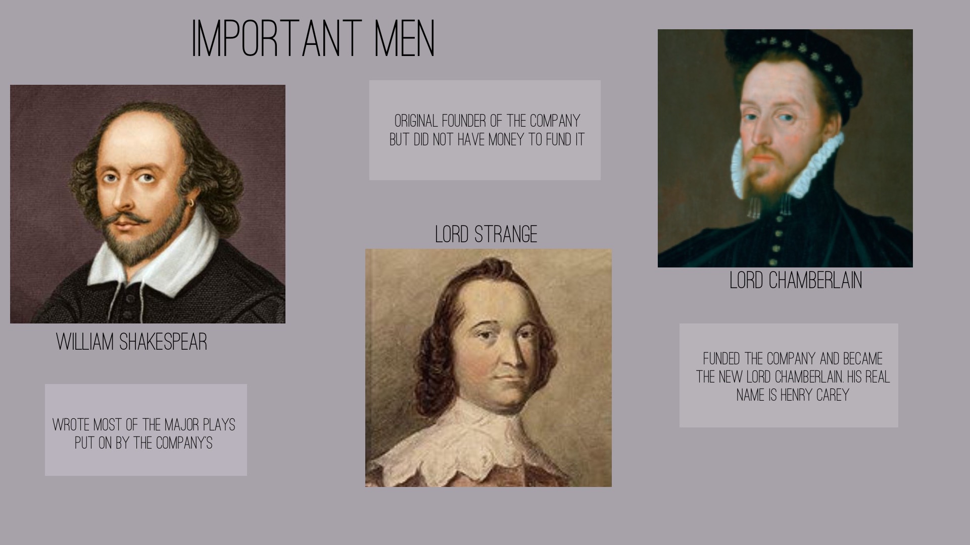 Funded the company and became the new lord chamberlain. His real name is Henry Carey