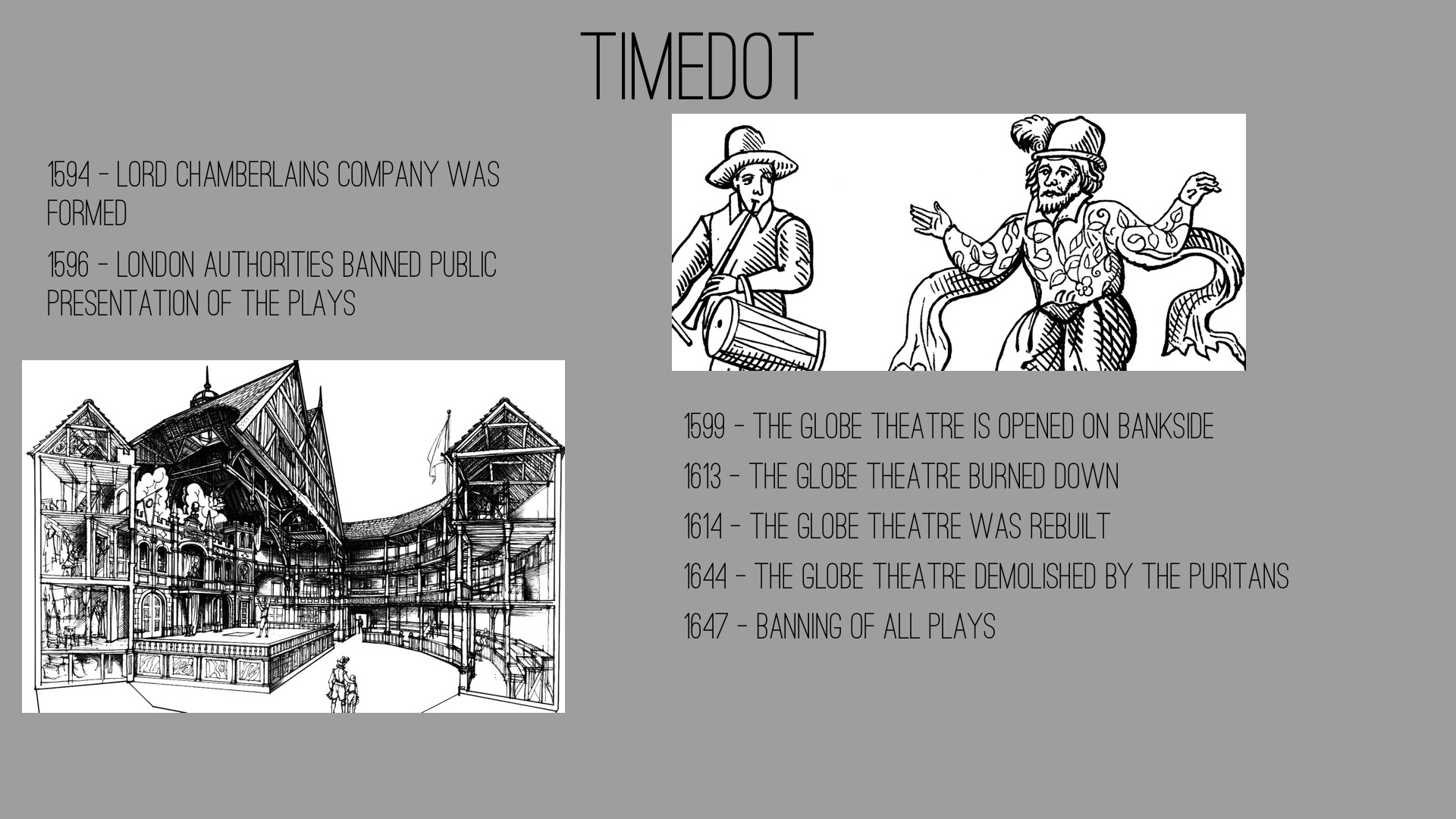 1644 - The globe theatre demolished by the Puritans