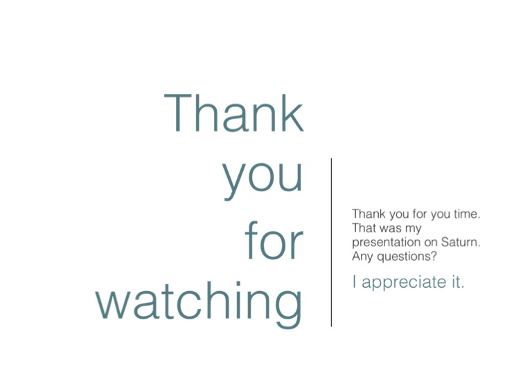 Thank you for you time. That was my presentation on Saturn. Any questions?