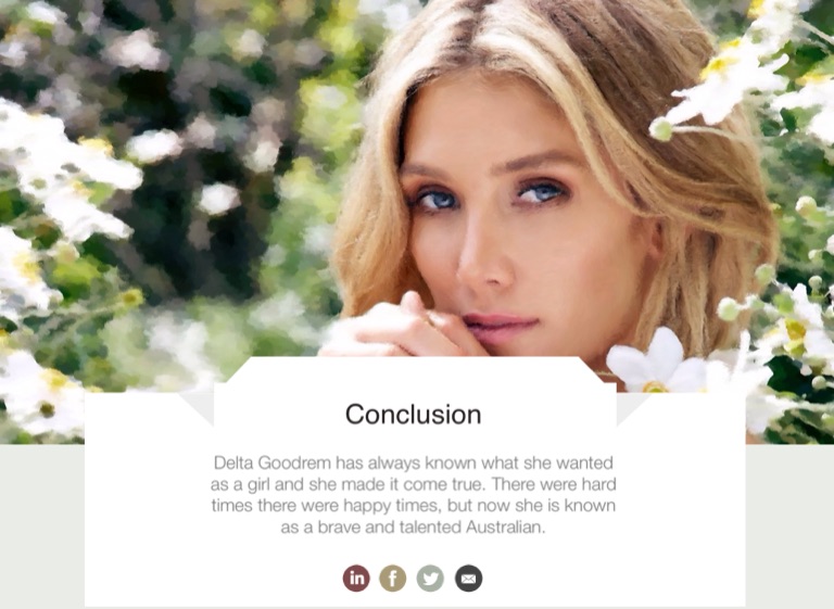 Delta Goodrem has always known what she wanted as a girl and she made it come true. There were hard times there were happy times, but now she is known as a brave and talented Australian.