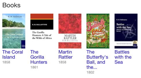 This made his scenes somewhat unrealistic, solely based in fantasy for his target audience. This writing style is easily seen through his works like "The Coral Island". A few of his other stories include "The Gorilla Hunters", "Martin Rattler", and "Battles with the Sea".