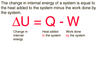 The first law makes use of the key concepts of internal energy, heat, and system work. It is used extensively in the discussion of heat engines. The standard unit for all these quantities would be the joule, although they are sometimes expressed in calories or BTU.