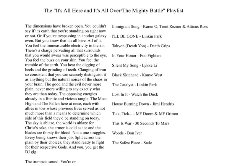 The "It's All Here and It's All Over/The Mighty Battle" Playlist