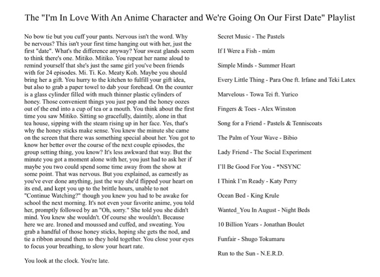 The "I'm In Love With An Anime Character and We're Going On Our First Date" Playlist