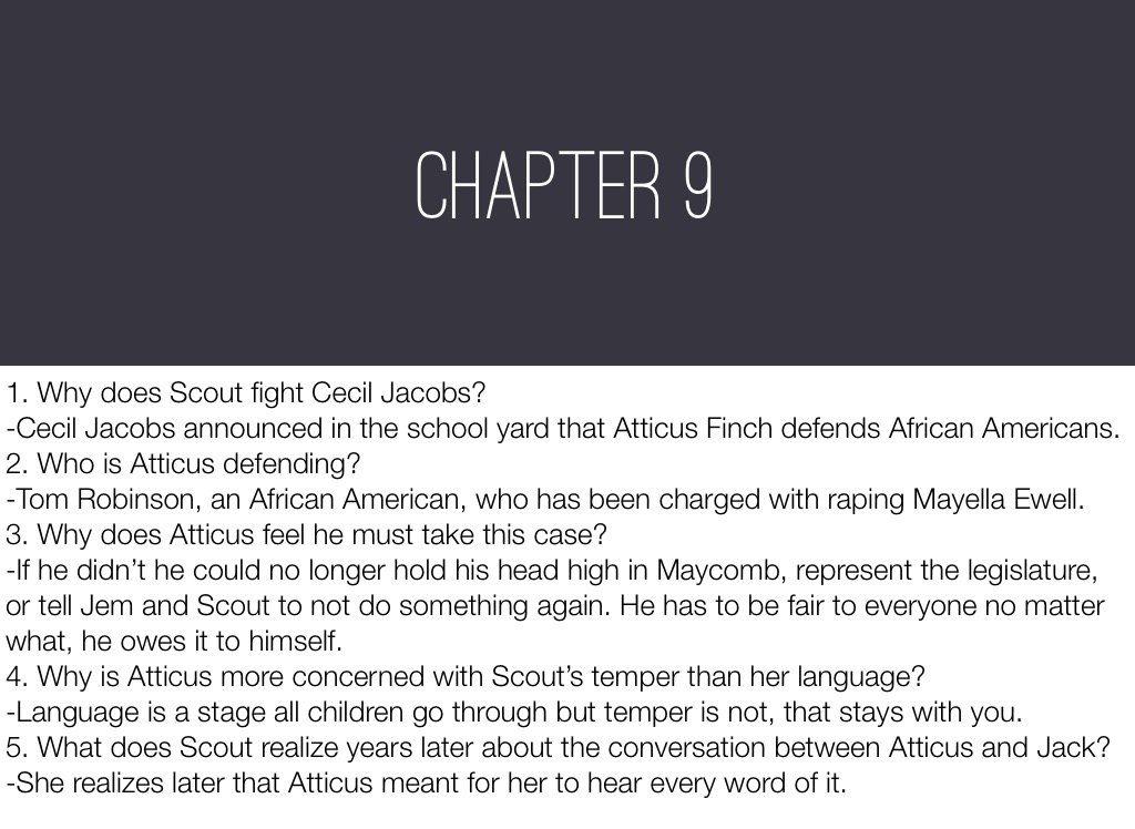 -Cecil Jacobs announced in the school yard that Atticus Finch defends African Americans.