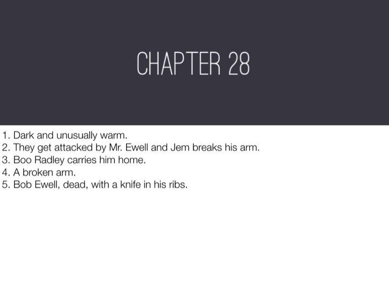 5. Bob Ewell, dead, with a knife in his ribs.
