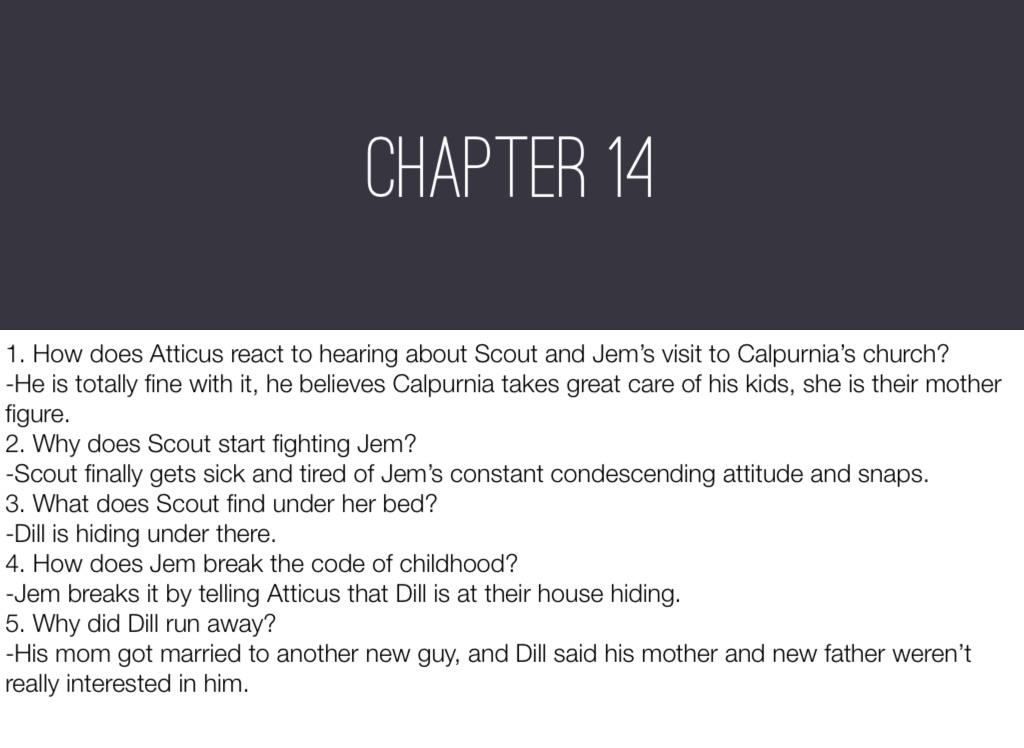 1. How does Atticus react to hearing about Scout and Jem’s visit to Calpurnia’s church?