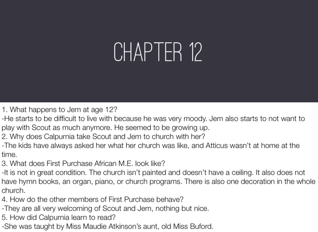 -The kids have always asked her what her church was like, and Atticus wasn’t at home at the time.