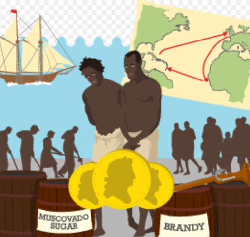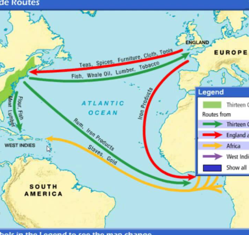 Goods were shipped from Britain to South Africa, exchanged for Slaves that were sent to West Indies in trade for Sugar, Rum, and Tobbacco. This is a great example of Cultural Interaction because it interacted trade throughout multiple places.