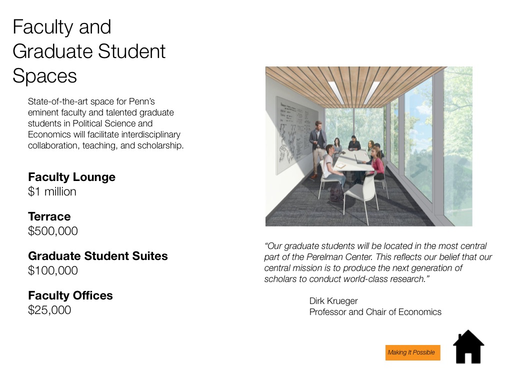 “Our graduate students will be located in the most central part of the Perelman Center. This reflects our belief that our central mission is to produce the next generation of scholars to conduct world-class research.”