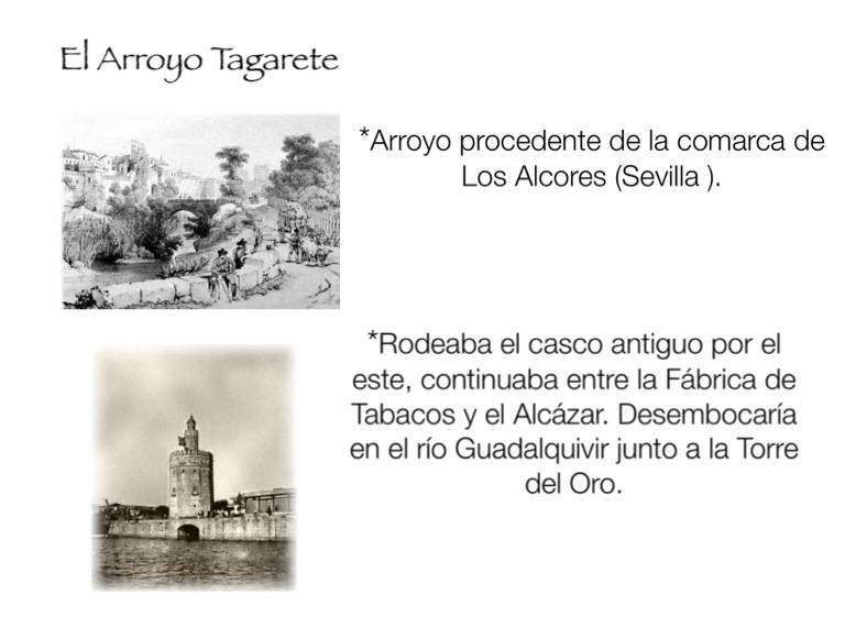 *Rodeaba el casco antiguo por el este, continuaba entre la Fábrica de Tabacos y el Alcázar. Desembocaría en el río Guadalquivir junto a la Torre del Oro.