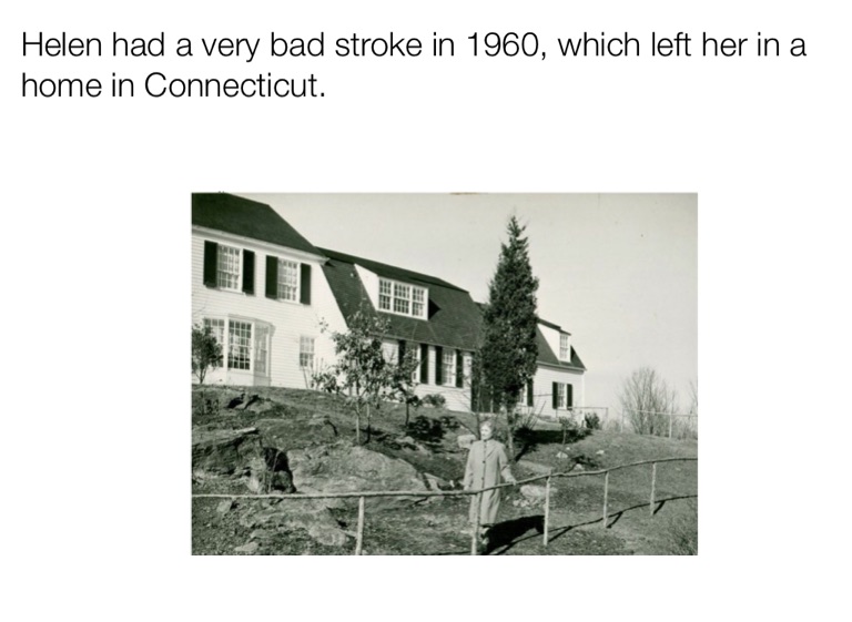 Helen had a very bad stroke in 1960, which left her in a home in Connecticut.