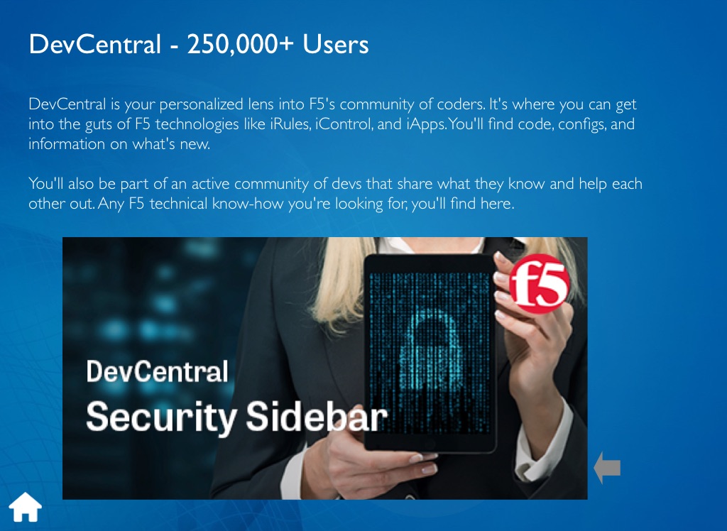 You'll also be part of an active community of devs that share what they know and help each other out. Any F5 technical know-how you're looking for, you'll find here.