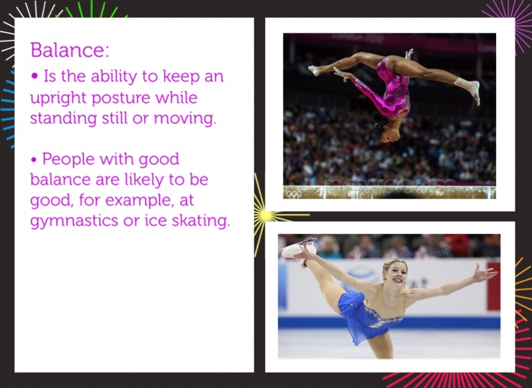 • People with good balance are likely to be good, for example, at gymnastics or ice skating.