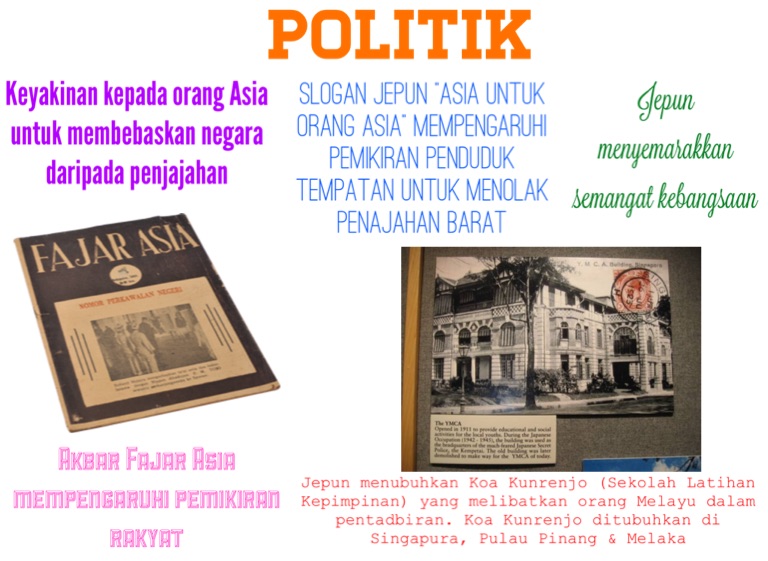 Slogan Jepun "asia untuk orang asia" mempengaruhi pemikiran penduduk tempatan untuk menolak penajahan barat