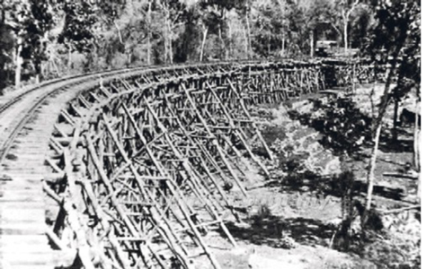 Penduduk menjadi buruh paksa untuk membina "Jalan Kereta Api Maut" di sempadan Thailand-Burma