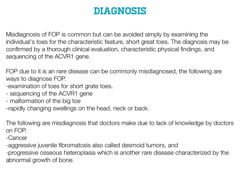 FOP due to it is an rare disease can be commonly misdiagnosed, the following are ways to diagnose FOP.