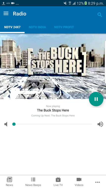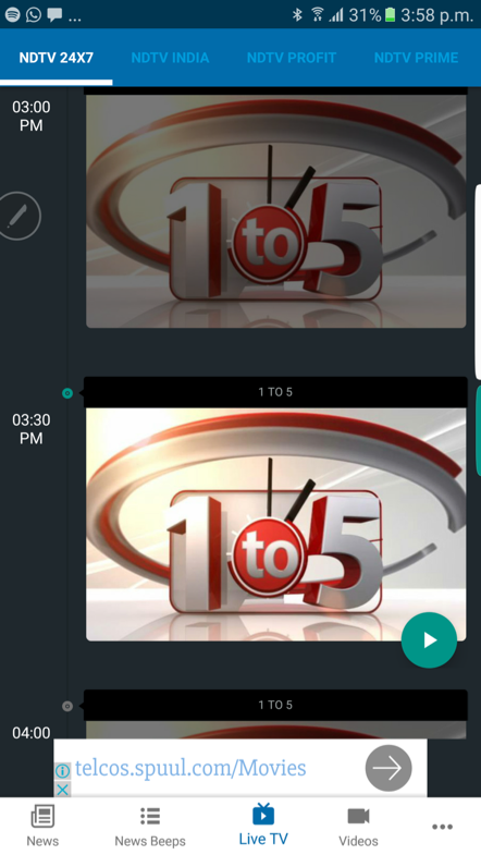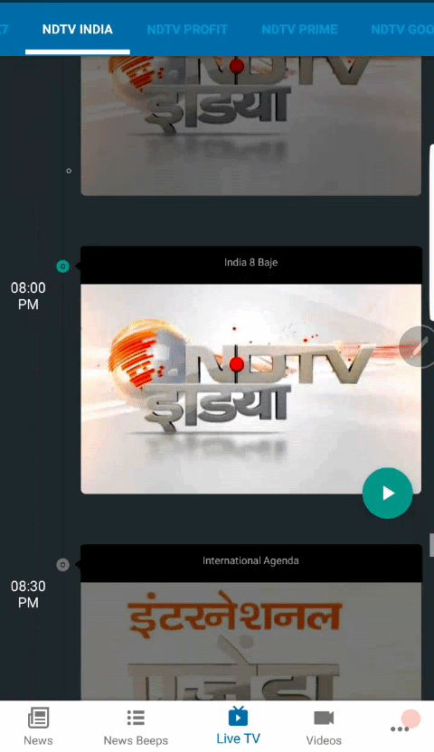 NDTV Live provides viewers with five options to view according to their interests. (24x7, India, Profit, Prime and Goodtimes)