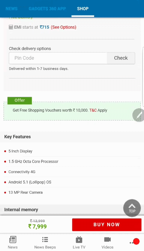 NDTV Gadgets help viewers stay up to date with the latest technology. Their ‘shop’ tab allows customers to view electronics and buy on click.