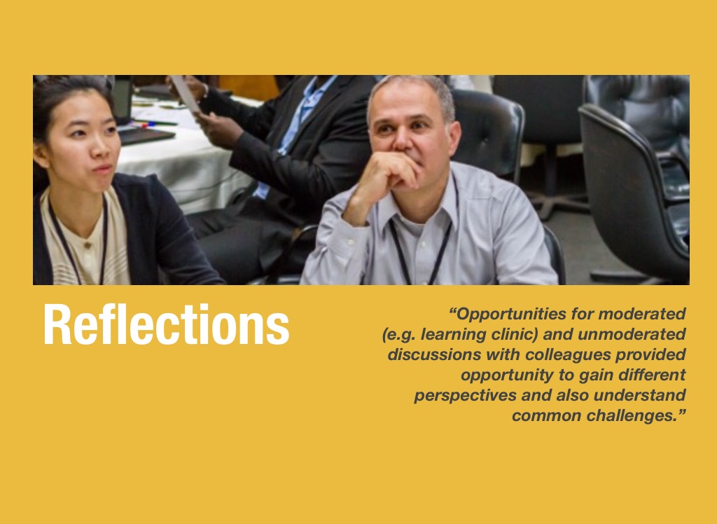 (e.g. learning clinic) and unmoderated discussions with colleagues provided opportunity to gain different perspectives and also understand common challenges.”