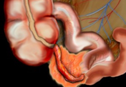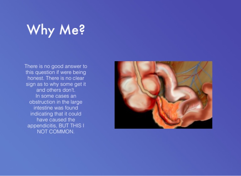 In some cases an obstruction in the large intestine was found indicating that it could have caused the appendicitis, BUT THIS I NOT COMMON.