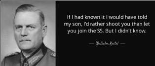 - Keitel's last words were " I call on God Almighty to have mercy on the German people. More than 2 million German soldiers went to their death for the fatherland before me. I follow now my sons - all for Germany."