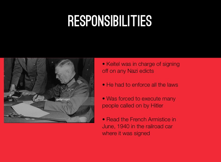 • Keitel was in charge of signing off on any Nazi edicts