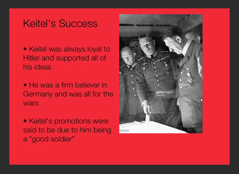 • Keitel was always loyal to Hitler and supported all of his ideas
