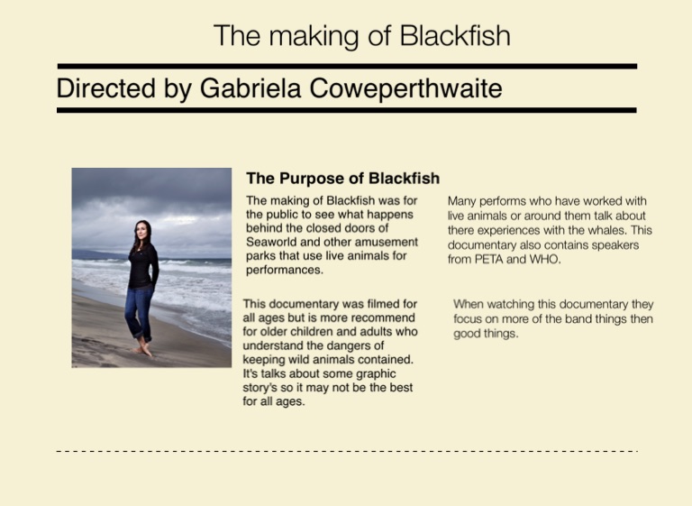 The making of Blackfish was for the public to see what happens behind the closed doors of Seaworld and other amusement parks that use live animals for performances.