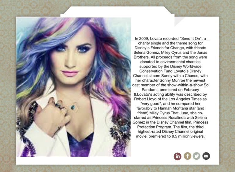 In 2009, Lovato recorded "Send It On", a charity single and the theme song for Disney's Friends for Change, with friends Selena Gomez, Miley Cyrus and the Jonas Brothers. All proceeds from the song were donated to environmental charities supported by the Disney Worldwide Conservation Fund.Lovato's Disney Channel sitcom Sonny with a Chance, with her character Sonny Munroe the newest cast member of the show-within-a-show So Random!, premiered on February 8.Lovato's acting ability was described by Robert Lloyd of the Los Angeles Times as "very good", and he compared her favorably to Hannah Montana star (and friend) Miley Cyrus.That June, she co-starred as Princess Rosalinda with Selena Gomez in the Disney Channel film, Princess Protection Program. The film, the third highest-rated Disney Channel original movie, premiered to 8.5 million viewers.