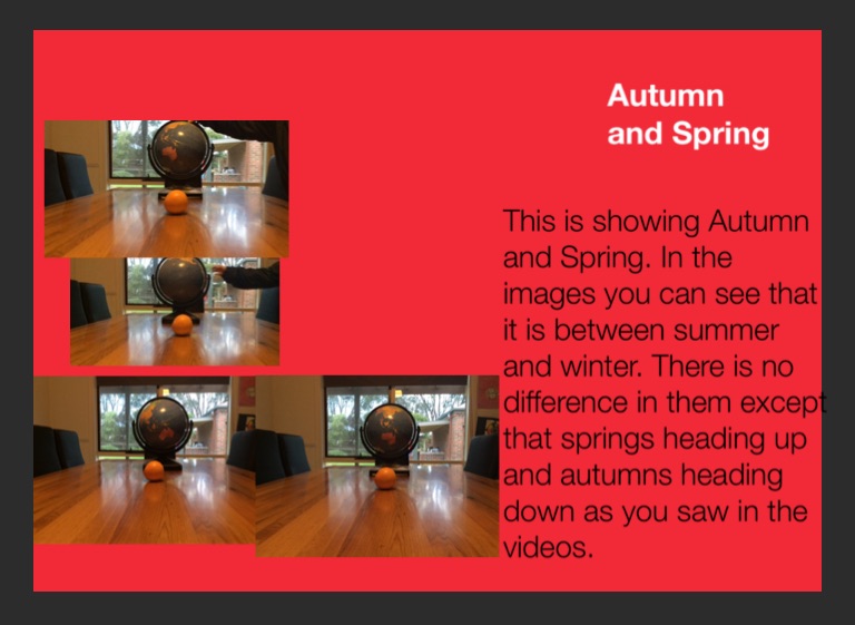 This is showing Autumn and Spring. In the images you can see that it is between summer and winter. There is no difference in them except that springs heading up and autumns heading down as you saw in the videos.